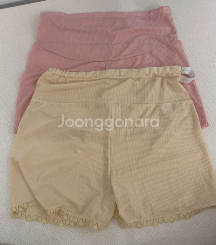 임부용 반바지 2벌입니다 사이즈는 2XL이고, 색상은 핑크색과 베이지색입니다 재질은 면 91% 및 스판덱스 9%입니다 상품올리려보니 살구색엔 얼룩이잇네요 고무나 옷결 만져보시면 새상품인거 아실거에요 시착 안한 새상품입니다