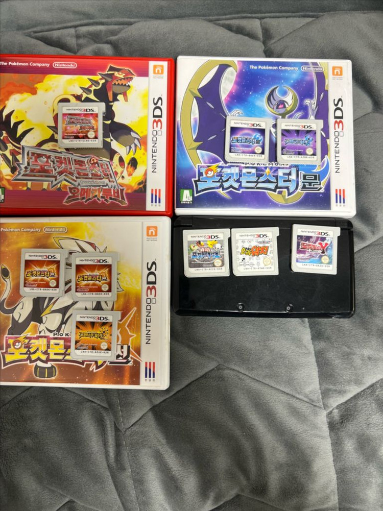 검정색 닌텐도 3DS와 포켓몬 칩 여러개 함께 판매합니다. 칩은 썬, 오메가루비, 슈퍼포켓몬 대격돌 등 다양하게 있습니다. 닌텐도 ( 생활 기스 있음 / L버튼 충격으로 인해 조금 눌림있음 / 펜 분실 ) 사용감 많은걸 고려하여 싸게 내놓습니다 닌텐도 + 포켓몬스터 칩 ( 썬 ,문 , 울트라썬 , 울트라문 , 오메가루비 , Y , 대격돌 ) + 요괴워치 게임 포켓뱅크 사용 가능합니다 닌텐도 3ds를 포켓몬으로 입문하시는 분께 추천드립니다 중고제품이기에 직거래로 확인 또는 제대로 확인하신후 거래 부탁드립니다 중고 특성상 환불이 힘든점 양해 부탁드립니다 기스 사진은 부탁드리면 채팅으로 보내드리겠습니다