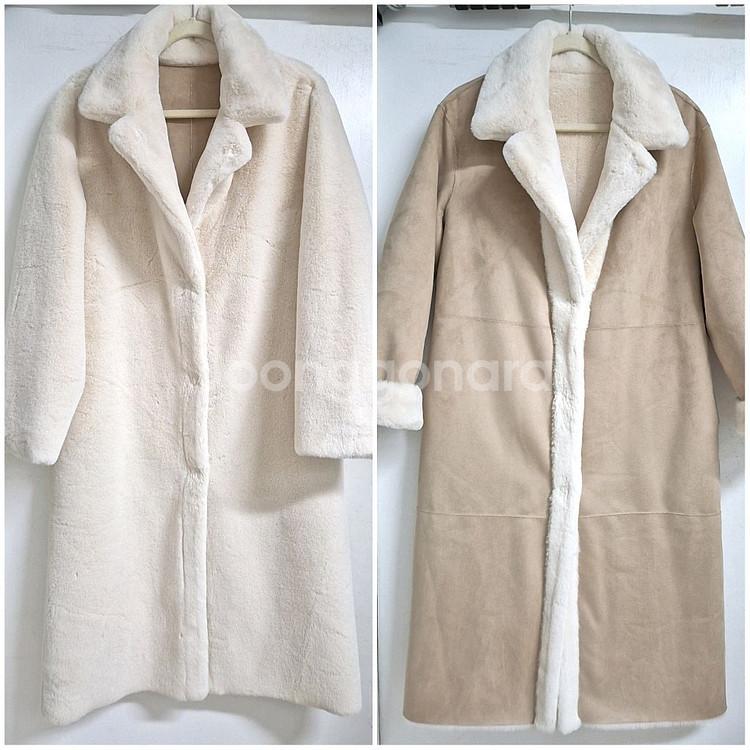 마리엘라로사티 퍼 전문 브랜드제품 리버시블 고퀄 에코퍼 무스탕 코트 도톰하고 스웨이드 부분이 뻣뻣하지 않고 아주 부드러운 느낌에 고퀄리티 원단감 스냅버튼여밈/카라부분에 와이어가 들어가 있어서 목까지 여미기 좋아요 *미착용 상태입니다 *사이즈Free/가단57/총장110 66~77가능해요 *교환환불불가 *구매하실분만 톡주세요