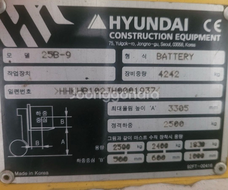 개인정보(거래정보)를 주고받는 행위는 사기에 노출될 수 있으므로 즉시 중고나라로 신고해 주세요현대 전동지게차 입니다 모델명 : 25B-9 톤수 : 2.5톤 마스트높이 : 3.3m 배터리년식 : 17년06월 사용시간 : 8782시간 옵션 : 앞뒤좌우 캐빈 장착 / 사이드쉬프트 장착 / 4스풀 판매시 앞뒤 타이어 새것 장착 // 충전기 포함 판매가격 : 950만원 *운임비 별도 // 네고가능