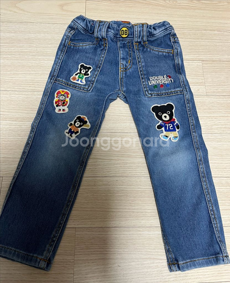 미키하우스 더블비의 청바지입니다. 사이즈는 100입니다. 자수와 패치가 있어 귀엽습니다. 한철입힌 사용감은 있지만 깨끗하고 상태 좋은 편입니다.