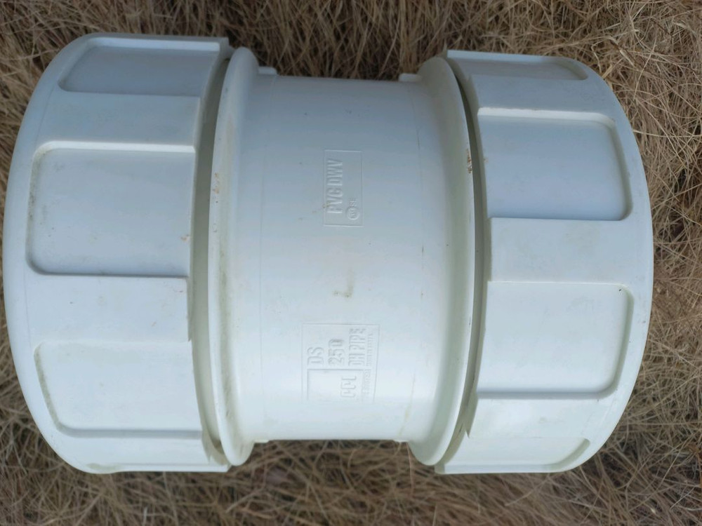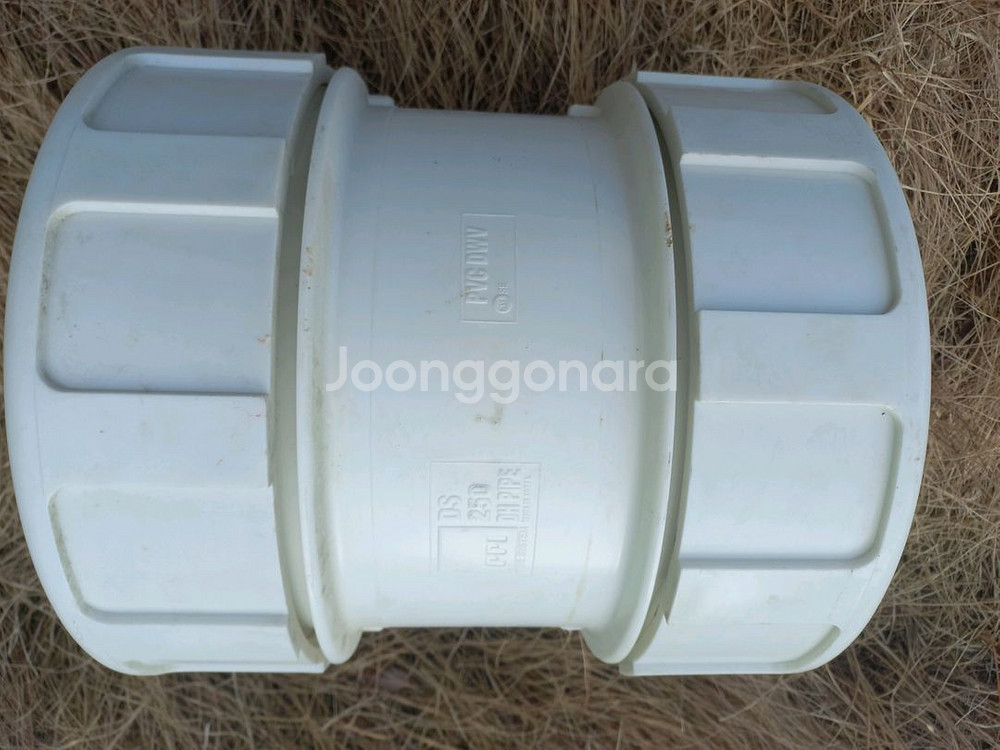 250mm 사이즈 PVC 배관 연결부품입니다. 사용감은 있지만 기능상 문제없어요. 배관 공사나 수리용으로 활용하시면 됩니다.