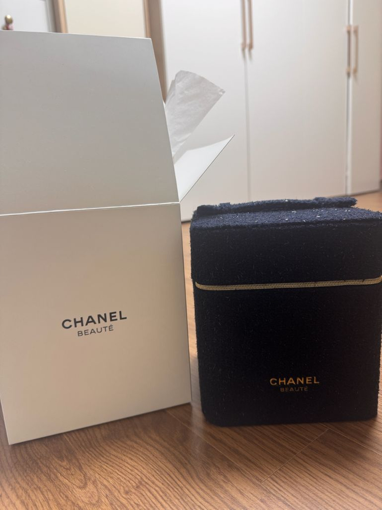 샤넬 뷰티 정품 파우치예요. 네이비 컬러로 고급스럽고 실용적이에요.