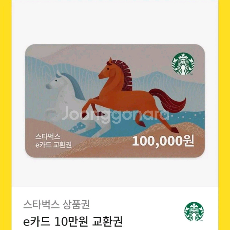 스타벅스에서 사용 가능한 10만원권 e카드 여러장 있어요 장당 92000원 01공 육사82 53칠칠