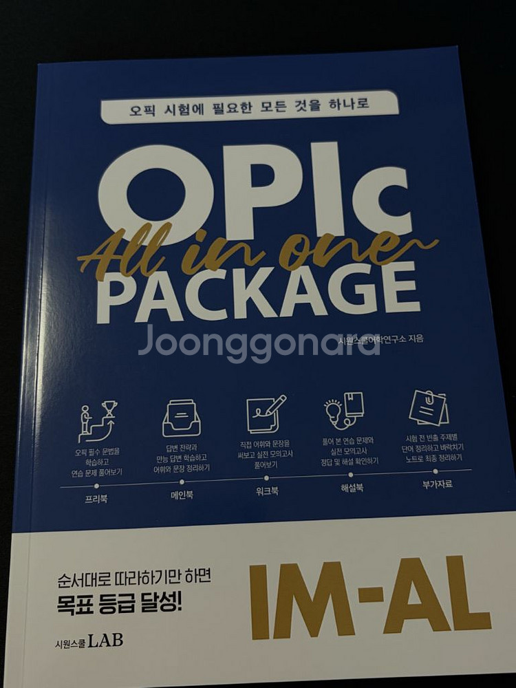 시원스쿨 OPIc IM-AL 올인원 패키지 새 책 입니다 -프리북, 메인북, 워크북, 해설북, 부가자료까지 All in One - IM-IH-AL 맞춤 학습 플랜 및 모의고사 문제 제공 - OPIC 기출 문제 분석을 통해 선별한 빈출 주제와 신규 주제 수록 - 세븐반택포 1.5입니다 에눌은 어려워요 ㅠㅠ