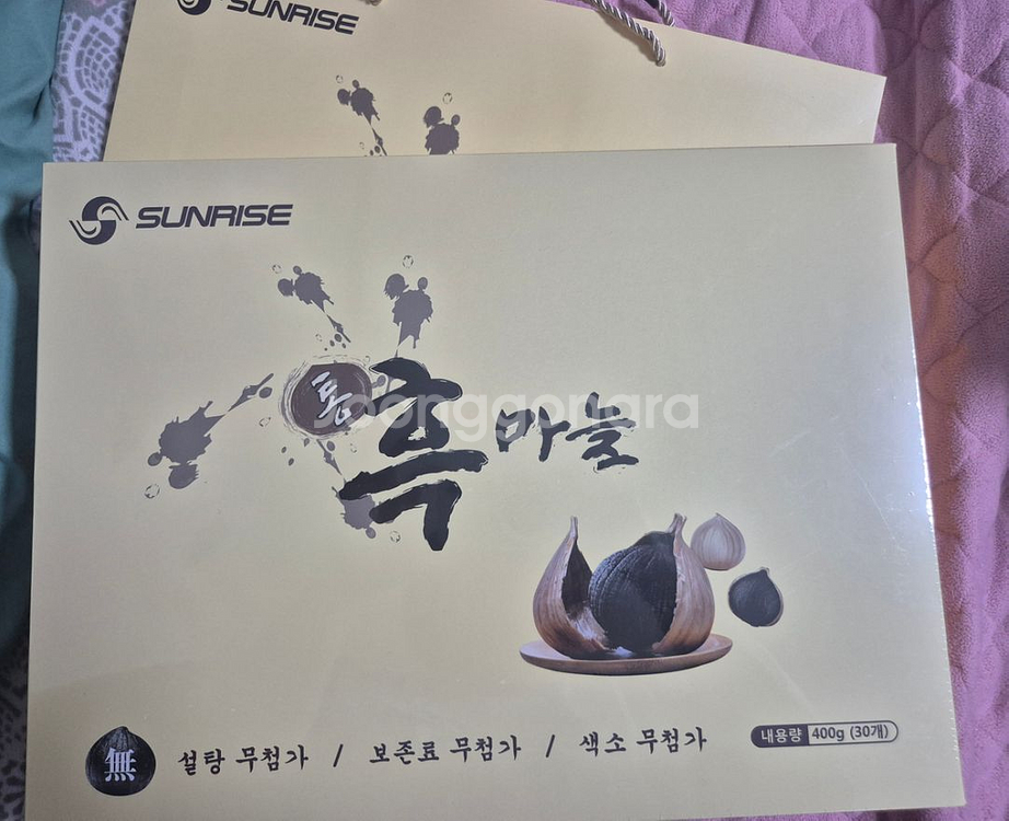 통흑마늘 400g 제품이에요. 박스 포장 상태가 깔끔하고 미개봉 새제품 같아 보여요. 건강 관리나 요리용으로 좋을 것 같네요!