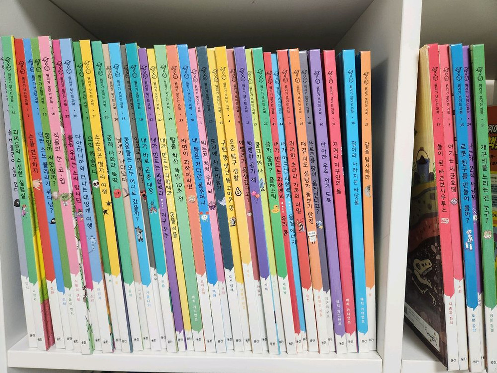 웅진 원리가 보이는 과학 44권 전권 판매합니다. 제가 웅진에서 새책 구입하였고 과학 전집이 많아 한두번 봐서 새책과 다름없습니다.