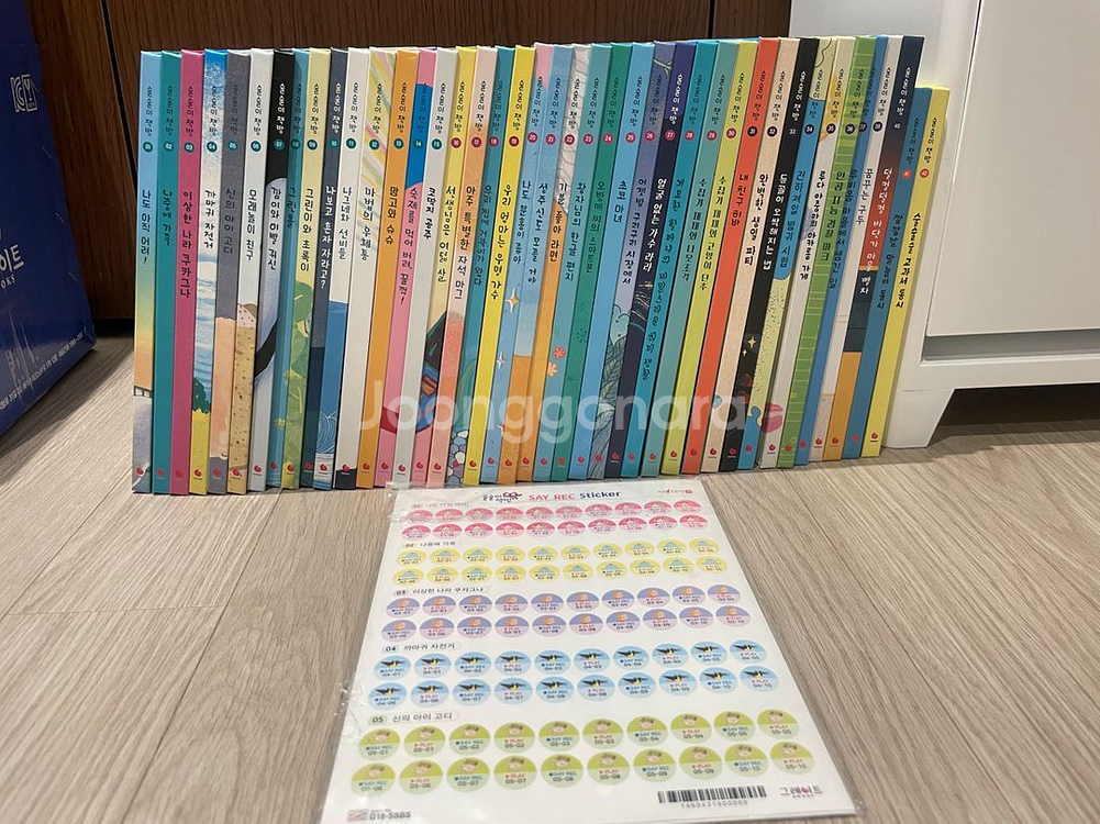 그레이트북스 술술이책방(박스포함 전구성)깨끗! 독서 후 맨뒷장 문제풀이 안한채 깨끗히 읽고 보관한책입니다. 세이펜스티커 다 있구요 세이렉스디커 딱한개가 어디붙어서 도망갔네요(32-6번 원형-사진참고) 그외 새책컨디션만큼이나 깨끗합니다 저학년 글밥늘릴때 너무 재미있게 잘 읽은 책이라 강추드립니다!! 택배가능(5천)