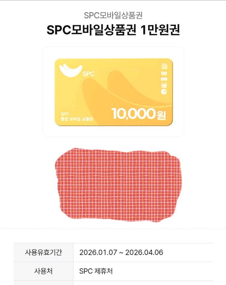SPC에서 사용 가능한 1만원 모바일 상품권이에요. 유효기간은 2026년 4월 6일까지 입니다.