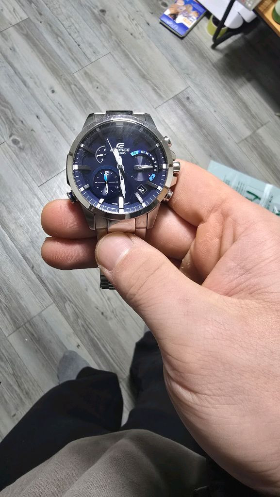 ai:카시오 에디피스 메탈 시계입니다 크로노그래프 기능이 있어 스포티한 느낌을 줍니다 - 100m 방수 기능으로 생활 방수가 가능합니다 - 스테인리스 스틸 밴드로 내구성이 좋습니다 약간의 사용감은 있지만 전체적으로 깨끗합니다 블투 + 텁솔되는 나름 고가라인입니다 저렴하게 판매합니다