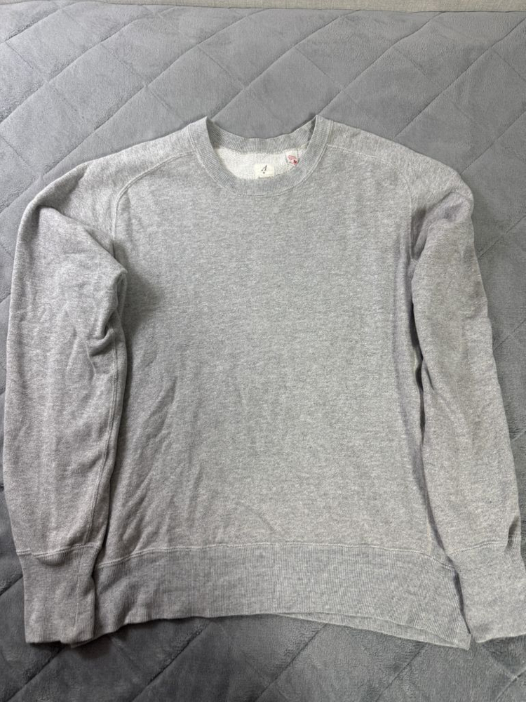 아나토미카 샘플 세일때 구매한 프리덤 슬리브 맨투맨입니다. 프리덤 슬리브는 50년대 맨투맨 사양이고 곡선모양 봉제가 되어 있어 활동범위가 더 좋습니다 옆구리 세로 리브로 내구성 높습니다. 보시면 아시겠지만 현행 아나토미카 맨투맨과는 사양이 다르고, 시중에서 판매하고 있는 사양이 아닙니다 체감 105정도 사이즈이며 실측및 상태는 보시는바와 같습니다