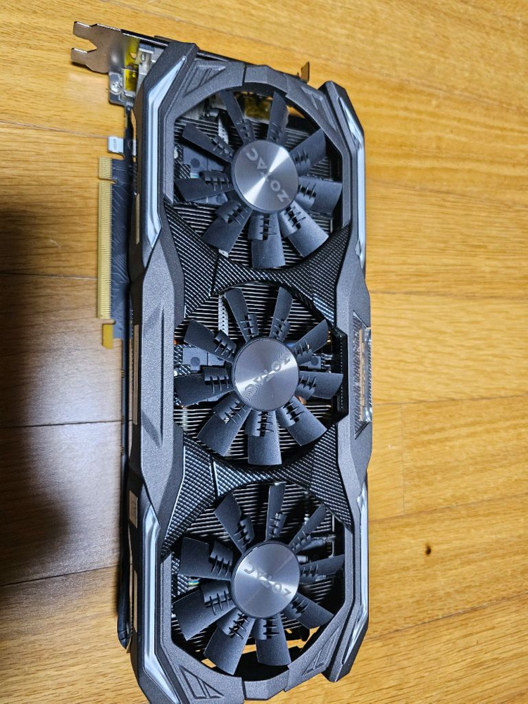 ZOTAC gtx 1070 8g 3fan 팔아요 3팬 모델 흔하지 않습니다 1년마다 먼지 청소 필히 함 히트 파이프, 방열판 보시면 먼지 없습니다 상태 아주 좋습니다 제가 신품 구매하고 지금까지 서브커에서 사용함 채굴 혹사 그딴거 안시킴 주로 했던 게임은 리니지1, 와우 입니다 fhd 환경에서 옵션 타협하면 아직도 100프레임 이상 뽑히다 참고사항 파워 8+8핀 입니다 길이는 약 30센티 입니다 안전거래 안하며 택배비 3천원 추가 입니다