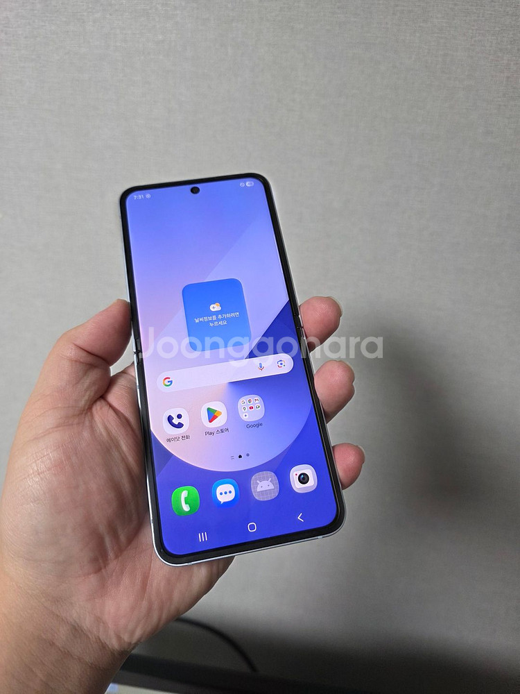 갤럭시 Z플립6 블루 256기가 SS급 팝니다 ●제품명 → SM-F741N (SK모델)(24년07월개통) ●제품상태 → S 급 모든제품은 기능검수완료된 제품입니다. 실제제품만 촬영한 사진입니다.참고해주세요 ▶N급 → 미사용 새상품 / 올수리된 리퍼상품 ▶S급 → 찍힘,스크래치없는 새상품급 컨디션 ▶A급 → 외관상태양호(미세사용감있는제품) / 무잔상제품 ▶A-급 → 외관상태양호(미세사용감있는제품) / 약한잔상제품 ▶B급 → 생활스크래치,찍힘,잔상있는제품 ▶C급 → LCD 파손있지만 사용하는데 문제는 없는제품 ●구성품 → 단품 ●정상해지 / 선택약정25%가능 / SK,KT,LG 바로사용가능 ●5시이전 입금시 당일출고 해드립니다 (7741)