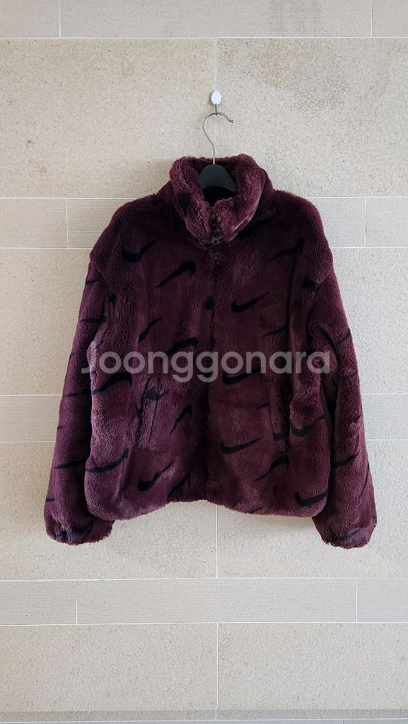 나이키 우먼 플러시 프린트 포우 퍼 자켓 버건디 M 가슴단면 ㅡ54 총장ㅡ60 상태 좋음