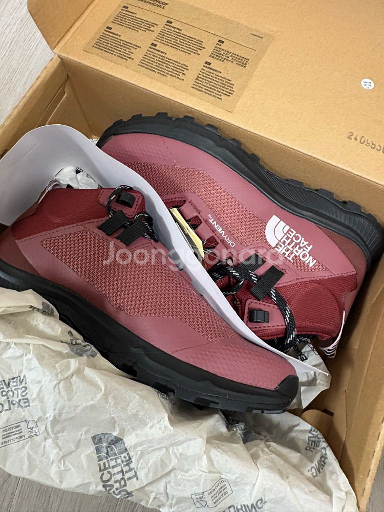 노스페이스 고어텍스 등산화 250사이즈입니당. 박스와 함께 깔끔한 상태로 보관되어 있어서 상태 좋습니다. 방수 기능이 있어서 등산이나 아웃도어 활동에 딱이에요! 텍도 안뗀 완전 새상품이에용 원가 189,000원에 주고 구매했었습니당