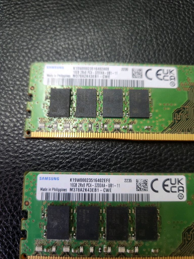 삼성 DDR4 16GB 3200 메모리 2개입니다. 같은 주차입니다.