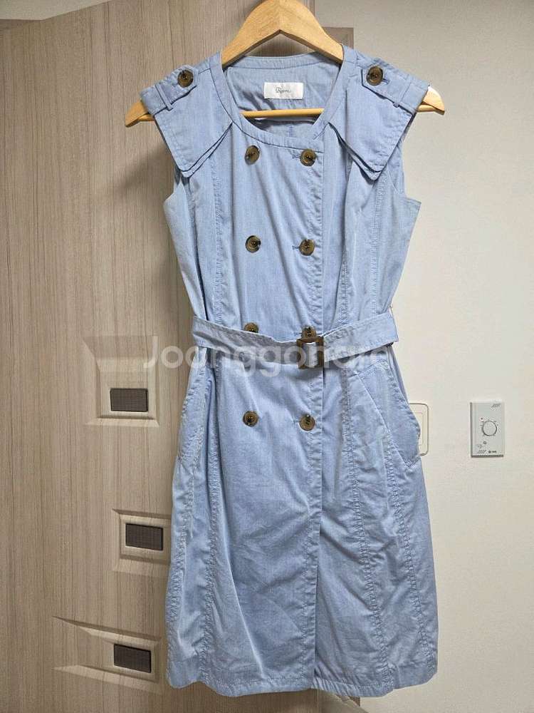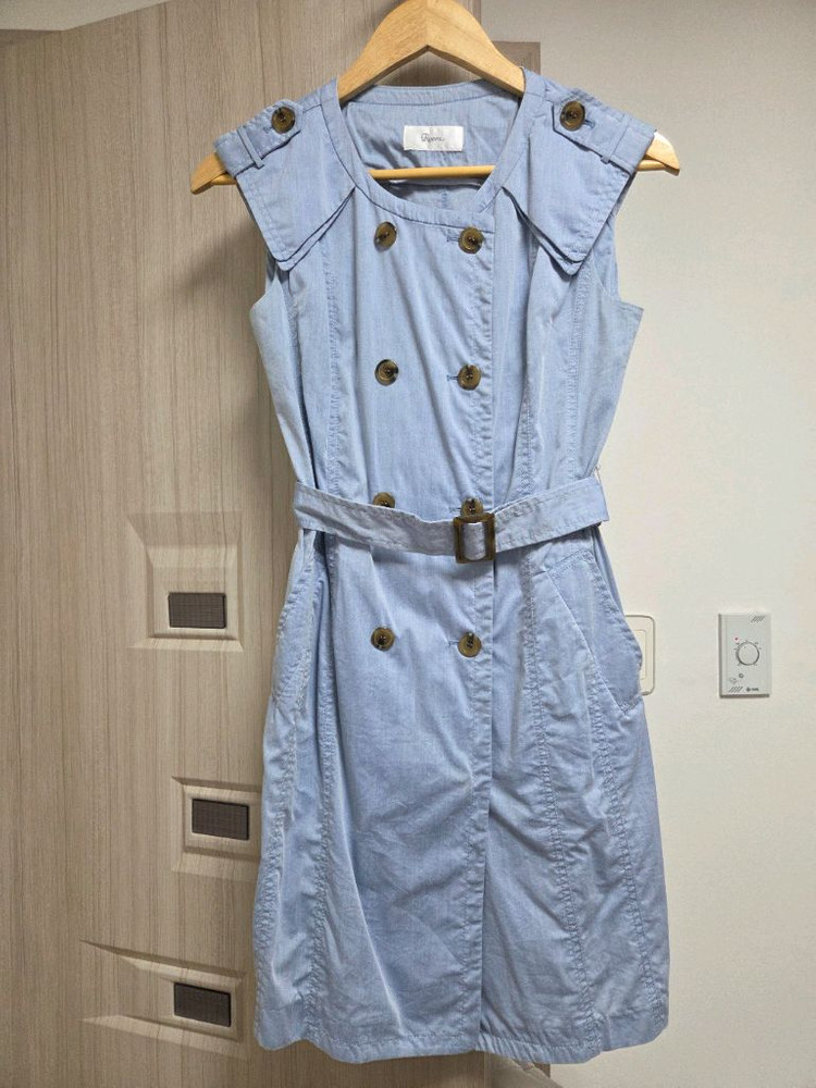Roem 브랜드의 트렌치 원피스입니다 - 스타일 번호는 RMOW137101-02입니다 - 사이즈는 85-95-160입니다 - 소재는 면 68%, 레이온 24%, 폴리에스터 4% - 옅은 하늘색 색상입니다 - 여름철에 고급스럽게 입기 좋아요 가슴둘레 85cm, 엉덩이둘레 95cm, 신장 160cm에 적합합니다
