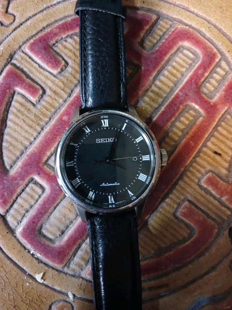 SEIKO 세이코 손목시계 스켈라톤 오토매틱 가죽줄 블랙컬러 입니다 시계는 깨끗하나 가죽줄은 사용감 있읍니다 작동은 좋읍니다