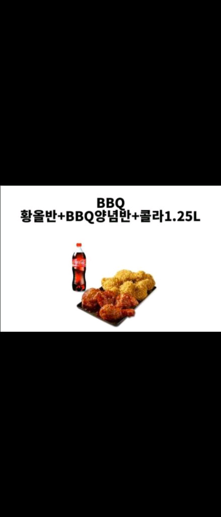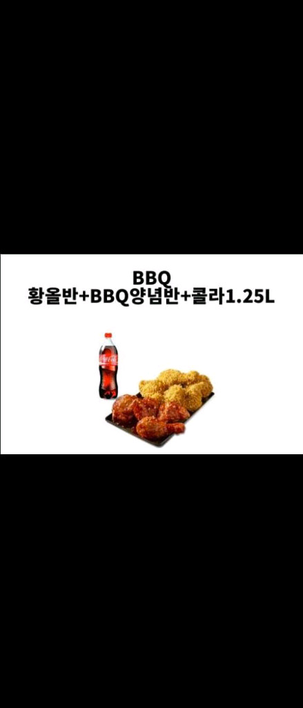 BBQ 황금올리브 반박과 양념밥, 콜라 1.25L가 포함된 세트입니다. 맛있는 한식 식사를 즐기실 수 있어요!