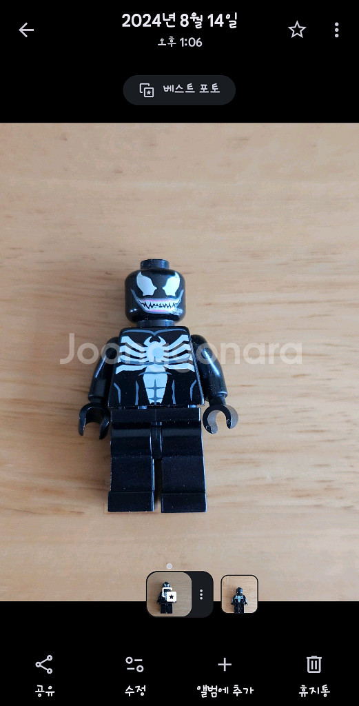 레고 스파이더맨 엔드게임 엘리트 시리즈의 엄청나한 엔젤 버전 미니피규어예요! 블랙 컬러에 블루 스파이더 패턴이 정말 멋있고, 상태도 깨끗해 보입니다.