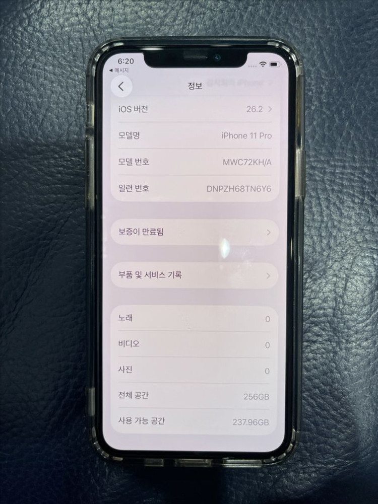 개인정보(거래정보)를 주고받는 행위는 사기에 노출될 수 있으므로 즉시 중고나라로 신고해 주세요모델명아이폰 11 프로 256GB컬러스페이스 그레이아이폰 11 프로 256GB 실버 색상입니다. 배터리 상태 76%로 사용감은 있지만 정상 작동하며, 전체적으로 깔끔한 상태예요.