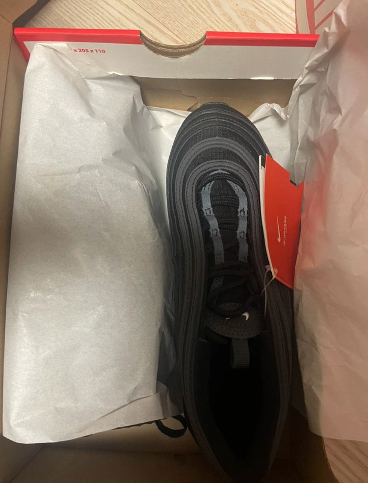 나이키 에어맥스97 블랙 245 GS (미개봉새상품) 택달린 미착용새상품입니다. 화이트색상과 함께구매시 -5,000원 해드려요 찔러보기, 에눌 답안해용 반택가능+2,000원 일반택배+4,000원