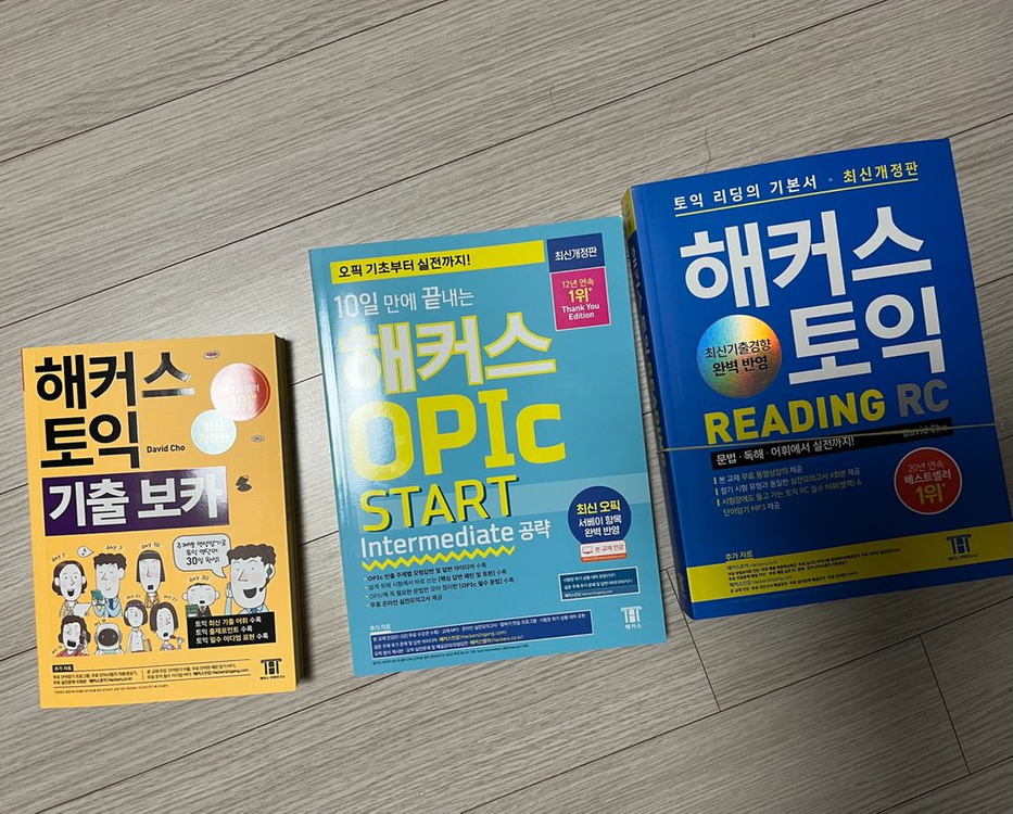 해커스 토익 기출 보카(노랭이) 12900-> 6000: 판매완료 해커스 토익 rc 리딩(파랭이) 18800->10000 해커스 한권토익 800 17700->9000: 판매완료 해커스 오픽 스타트 25000->13000 모두 필기없는 새 제품이고 최신개정판입니다 두권이상 구매시 1000원 할인입니다