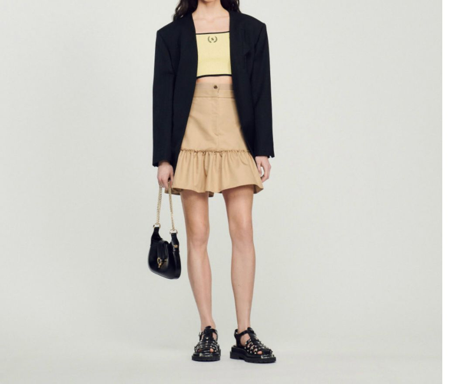 산드로 프릴스커트 새상품 판매합니다 작년 제품이고 한번도 착용 안하고 옷장에만 있다가 판매합니다 사이즈는 34이며 귀여운 스타일이고 니트, 셔츠 등 어디든 매치하시기 좋아요 키 163기준 짧지도 않아 부담스럽지 않습니다 택포 7에 판매합니다 공10- 육30오-일65일로 연락주세요