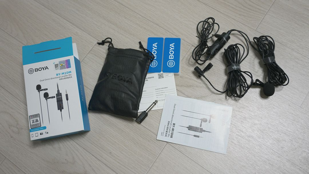 보야 BY-M1DM - 듀얼 무지향성 라발리에 마이크 - 스마트폰과 카메라에 모두 사용 가능 - ASMR용으로 사용하기 좋음 - 3.5mm 유선 마이크 - 폼 윈드스크린 하나 분실 (사진 참고/인터넷에서 천원이면 구매 가능) 판매사유 : 한번 사용하고, 사용할 일이 없어서 정리