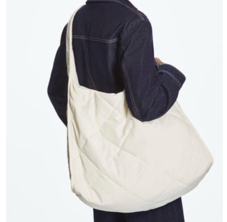 COS 다이아몬드 퀼티드 오버사이즈 식빵백 크림색 숄더백 크로스백 가능 정품, 택 달린 새상품이에요 사이즈가 워낙 커서 남자 사용 가능합니다. 택배거래 3300원 추가 반값택배 CU GS 2700원 추가 직거래는 일산 호수공원 부근, 선입금 문고리 거래 가능. 반품 환불 불가