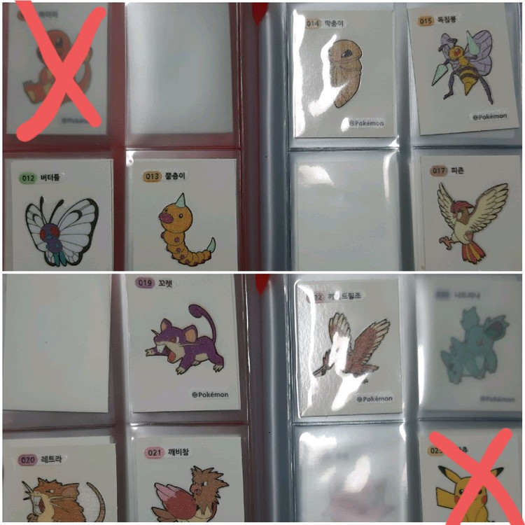 포켓몬 스티커 띠부띠부씰 팝니다. 개봉하자마자 포켓북에 넣어서 보관해서 상태는 좋은 편입니다. 전부 1세대이고, 3자리 숫자이며, 개당 2천원에 팝니다. 최소 1만원 이상 거래 부탁드립니다. 택배비는 +3천원입니다. 구매후 환불 불가합니다 제가 파는 다른 물건들과 묶음배송도 가능합니다. (미개봉 띠부씰도 따로 팔고 있습니다) 사진은 팔린것도 있기에 아래 판매목록을 꼭 확인하세요. < 판매 목록 > 딱충이 독침봉 피죤 꼬렛 레트라 삐삐 식스테일 푸린 주벳 냄새꼬 콘팡 디그다 닥트리오 망키 가디 윈디 발챙이 강챙이 후딘 괴력몬 모다피 우츠보트 왕눈해 독파리 야돈 코일 파오리 쥬쥬 질퍽이 질빼기 파르셀 롱스톤 슬리퍼 크랩 아라리 나시 탕구리 텅구리 암나이트 신뇽 망나뇽 구매하실 목록을 채팅으로 말씀해주시면, 바로 그 목록으로 새판매글 올려드릴테니, 바로 안심결제 해주시면 됩니다. 구매 후 환불불가합니다 택배 받으시면 확인후 바로 구매확정 부탁드립니다.