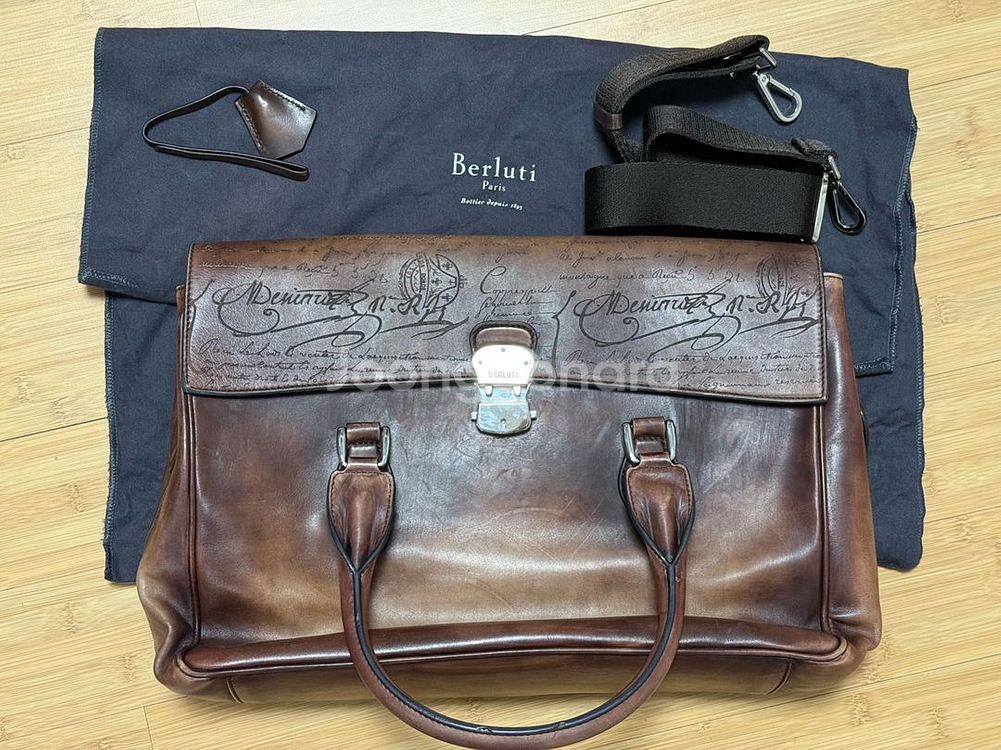 벨루티 에미오 스크리토 브리프케이스로 2022년 해외부띡 구매제품입니다. 실사용제품이라 스크래치 및 사용감 있습니다. 구성품은 본품, 숄더스트랩, 열쇠끈, 더스트백 (얼룩있음, 사진참조) 입니다. 되도록 직거래 선호합니다. 강남 선정릉역쪽입니다.