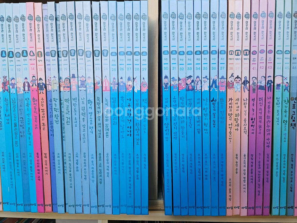 전52권. 흠없이 아주 깨끗한 A급.활동지 3권(1,6,15번)일부 사용. 남향보관으로 기둥색바램 살짝 있음. 사진참조. 아우라 한국사 전 52권 A급 판매합니다. 아이들 한국사 공부에 도움이 많이 되는 책입니다. 사진에서 보시는 것처럼 상태 좋습니다. 별도 문의 없으시면 바로 안전결제 부탁드려요!