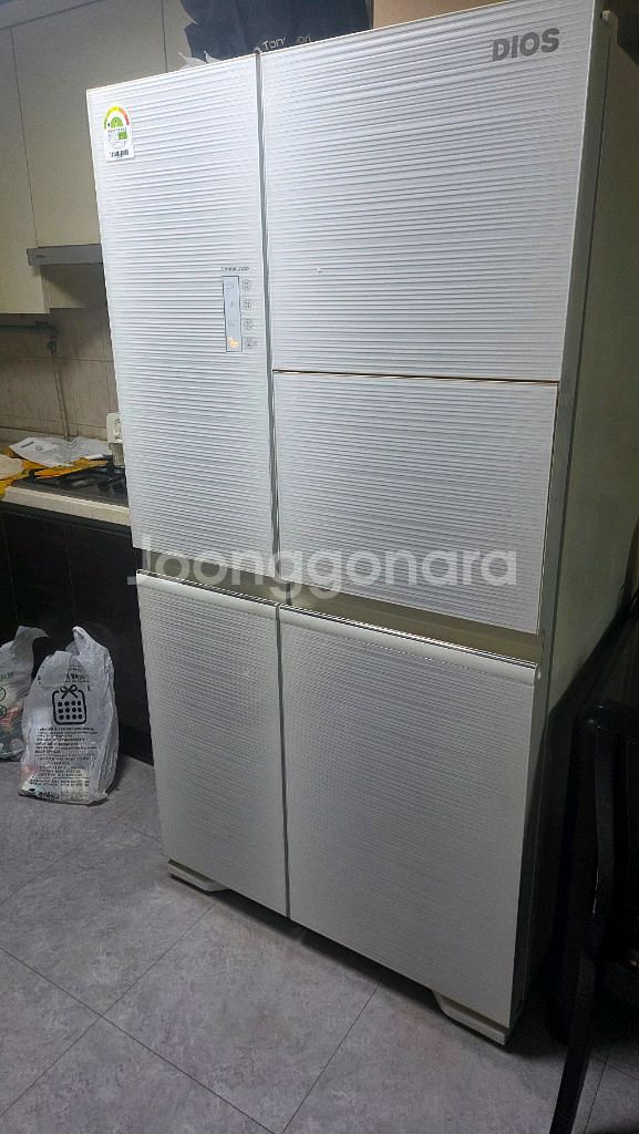 LG 디오스 4도어 냉장고 판매합니다. 화이트 색상으로 깔끔하고 사용감은 있지만 정상 작동해요. 실용적인 사이즈로 주방에 잘 어울립니다.
