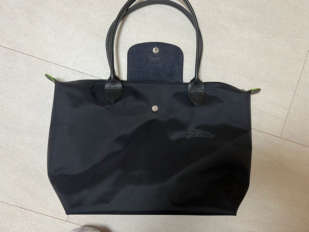 롱샴의 클래식한 블랙 컬러의 GM 사이즈 토트백이에요. 사몰가 파우치도 같이 드려요 고지할만 특별한 오염 없어요. 가품이 너무 많다고 해서 공식홈에서 구매했어요 밑바닥 모서리 사용감 약간 있네요