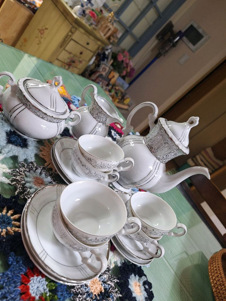 개인정보(거래정보)를 주고받는 행위는 사기에 노출될 수 있으므로 즉시 중고나라로 신고해 주세요크로셰 패턴의 우아한 유럽풍 차잔 세트예요. 티팟과 컵, 접시가 모두 포함되어 있고 상태도 깔끔해 보입니다. 고급스러운 디자인으로 특별한 날용으로 딱 좋을 것 같아요!