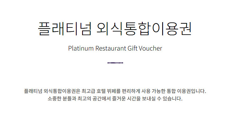 개인정보(거래정보)를 주고받는 행위는 사기에 노출될 수 있으므로 즉시 중고나라로 신고해 주세요호텔 플래티넘 외식통합이용권이에요. 최고급 호텔 뷔페를 저렴하게 이용할 수 있는 통합 이용권입니다. 유효기간 확인 후 구매해주세요! 33만원권 팝니다. 모바일 바코드 입니다. 사용처는 http://platinum.familyvoucher.com/v4.html 참고하세요