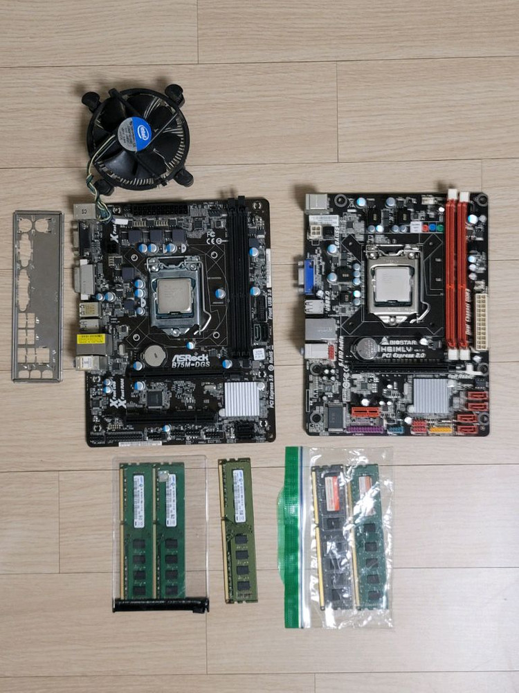 인텔 i3-3240,asrock b75m,정품쿨러,백패널 인텔 i3-2120,h61mlv 삼성램 ddr3 4g 2개 , 2g 1개 타사램 ddr3 4g 1개 , 2g 1개 일괄판매합니다.
