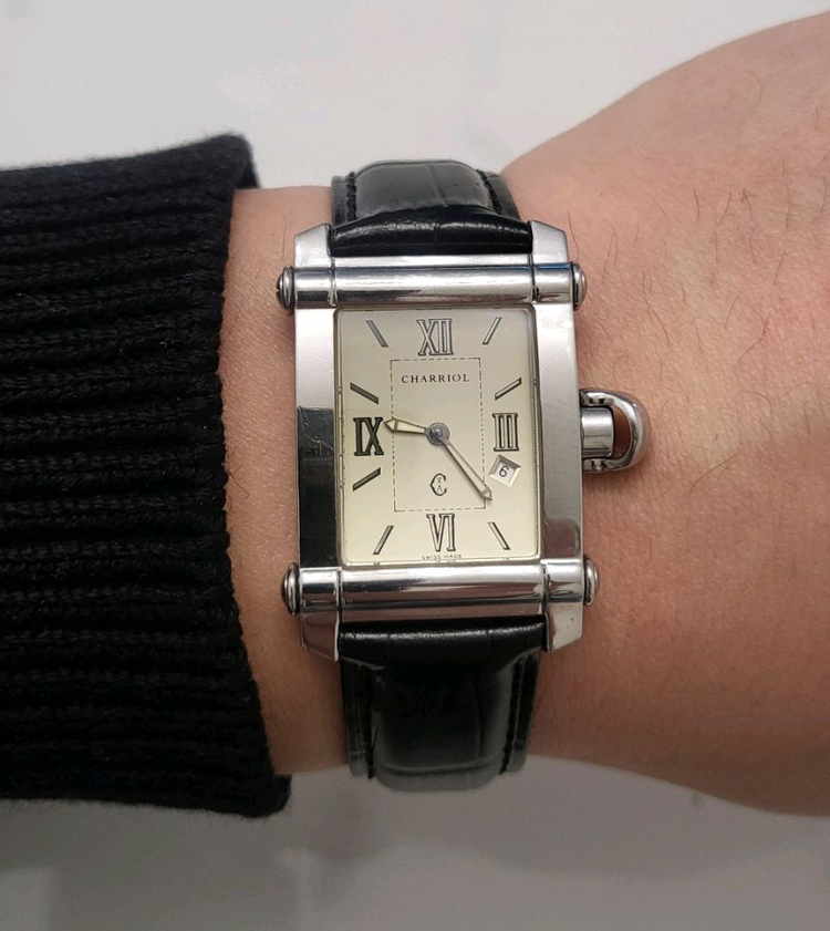 정품 필립 샤리올 남성 은장 가죽시계입니다 스위스 명품으로 한국에서도 점점 인지도 상승중인 브랜드입니다 중고가도 대부분 100이상이네요 정상작동중이며 상태 괜찮습니다 실물이 너무 이쁜 시계입니다 용두 미포함 가로 2.5cm 손목 프리 좋은가격에 판매해봅니다 단품이고 원하시면 여성분들도 착용가능합니다