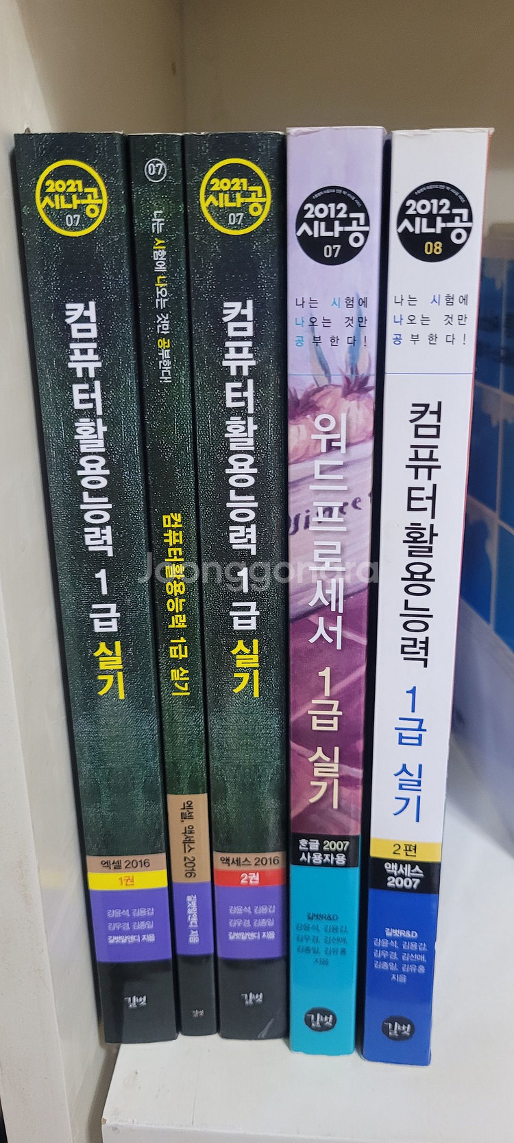 개인정보(거래정보)를 주고받는 행위는 사기에 노출될 수 있으므로 즉시 중고나라로 신고해 주세요컴퓨터활용능력 1급 실기 시험 대비 교재 5권 세트입니다. 워드프로세서와 엑셀 등 다양한 자격증 시험 준비에 도움이 될 것 같아요. 상태는 양호한 편입니다.