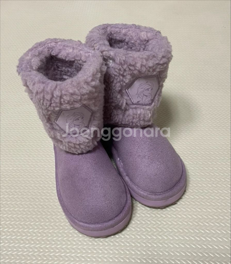 디즈니 겨울왕국 아동용 부츠입니다 라벤더 색상이며, 겨울에 따뜻하게 신을 수 있어요 밑창보시면 몇번 안신어서 상태 매우 좋아요!