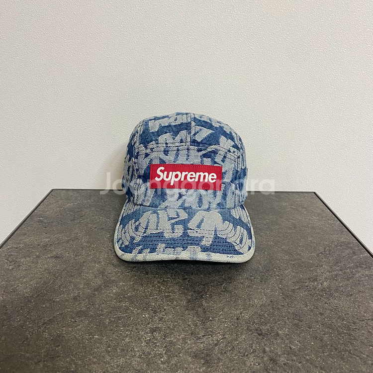 (OS) 슈프림 박스로고 캠프캡 모자 워시드 데님
