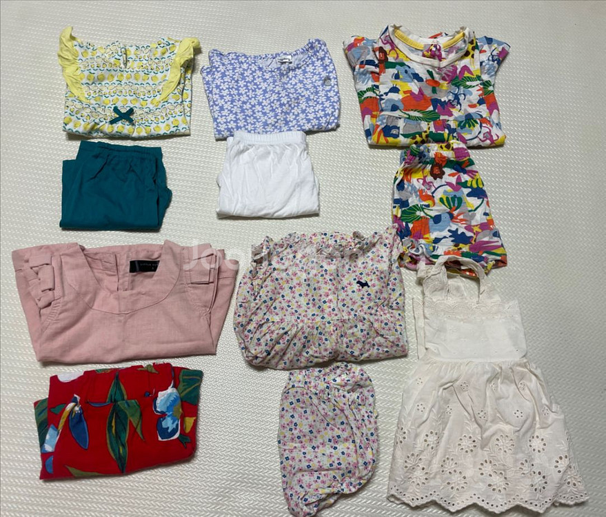 18-24개월 여아 여름옷들을 일괄 판매해요! 다양한 패턴과 색상으로 구성되어 있고, 전체적으로 깔끔한 상태입니다. 여름철 아이 옷으로 활용하기 좋을 것 같아요. 이염은 패턴이 강해서 제가 못봤을수도 있지만 전부 상태 좋습니다! 일괄 택포로 보내드려요