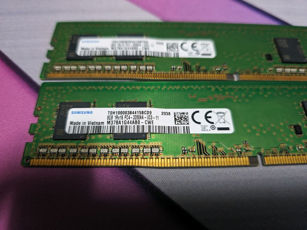 삼성 DDR4 3200 8GB 메모리 2개(동일 주차)를 일괄 판매합니다. 작년에 데스크탑 해체하며 보관해 오던 제품으로 상태 좋습니다. 요즘 램값 폭등으로 이 가격에 구하기 쉽지 않으실 겁니다. 택배거래 우선이며 노 리턴, 파손 면책 동의 하에 편의점 택배로 보내드립니다. 다만 택배를 예약하면 다음날 발송 가능하니 이점 참고해 주시기 바랍니다. 직거래는 수원 성균관대 부근 GS25 율전성대점 앞에서 주말에만 가능합니다. 문의사항 없으시면 바로 안전결제 해주시면 됩니다. 네고 요청에는 답신드리지 않으며 제품 상태는 위의 실제 사진을 참고해 주세요. 판매 내역 많으니 안심하고 구매하셔도 됩니다.