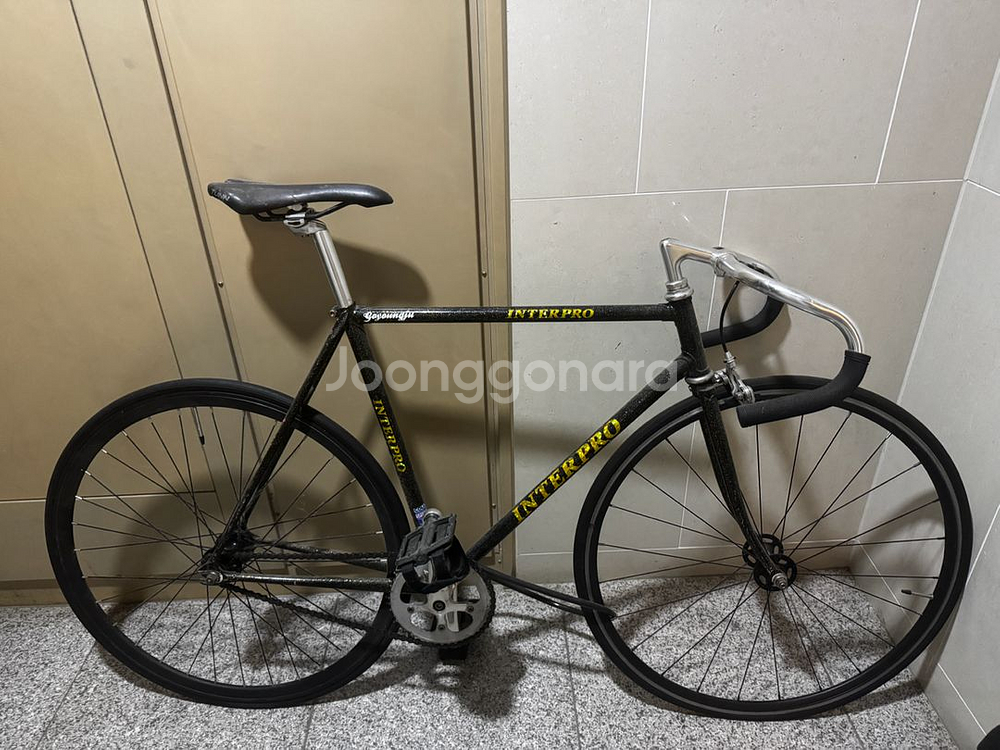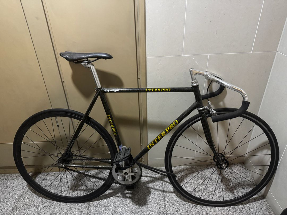 인터프로 브랜드의 블랙 컬러 픽시 자전거예요. 옐로우 포인트가 들어간 깔끔한 디자인이고, 전체적으로 상태가 양호해 보입니다.직거만 합니다.무리한 내고 요청하면 차단합니다