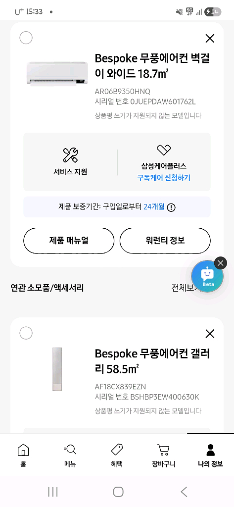 개인정보(거래정보)를 주고받는 행위는 사기에 노출될 수 있으므로 즉시 중고나라로 신고해 주세요삼성 비스포크 무풍에어컨 2in1이에요. 냉방과 난방 모두 가능한 실용적인 에어컨입니다. 구입은 작년 10월에 했고 워런티 기간은 구입일로부터 2년입니다. 해외 주재원 발령으로 급히 처분하게 되어 중고시세보다 휠싸 낮게 금액책정했습니디.