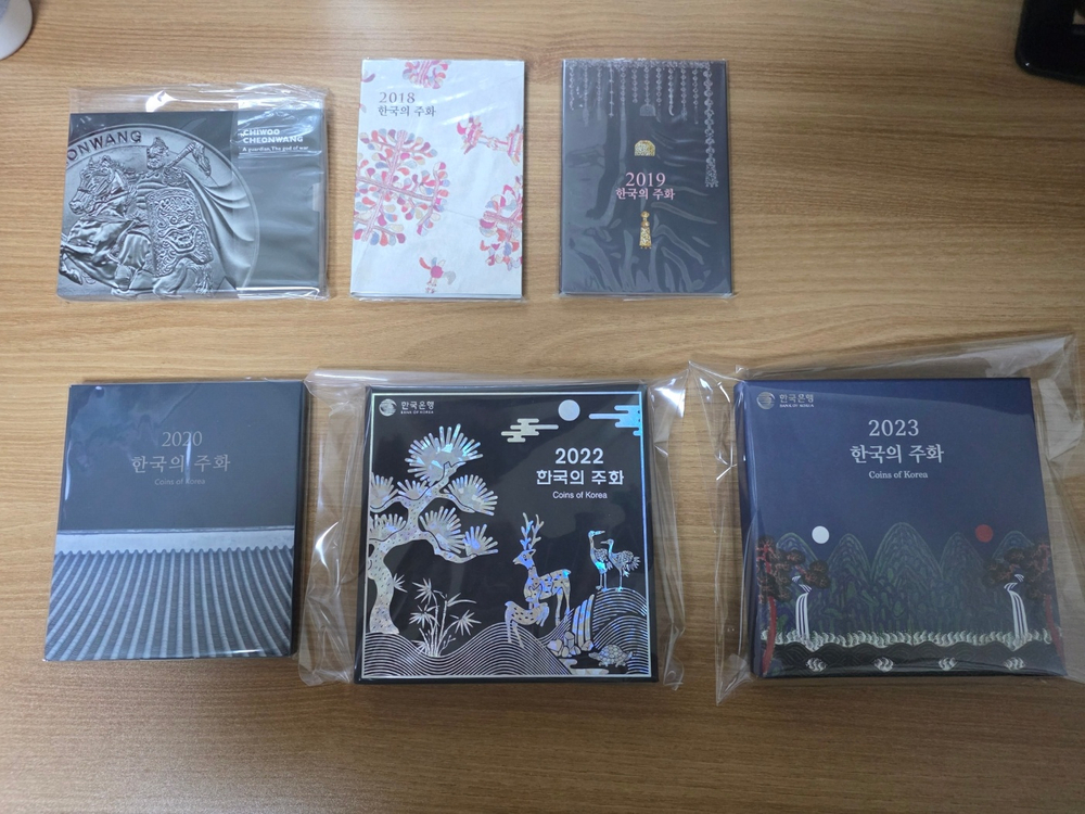 <기념주화> 2018년 한국의 주화 => 28,000원 2019년 한국의 주화 => 18,000원 2020년 한국의 주화 => 33,000원 2022년 한국의 주화 => 67,000원 2023년 한국의 주화 => 20,000원 2017년 치우천황 기념 은화 => 100,000원 2020년 한국은행 창립 70주년 기념주화 => 270,000원 ** 초기 발행 상태 그대로(최상), 마운트(비닐)에 보관중입니다. =================================== 안심결제) 성남 분당구 미금역 롯데선경아파트 직거래 가능.