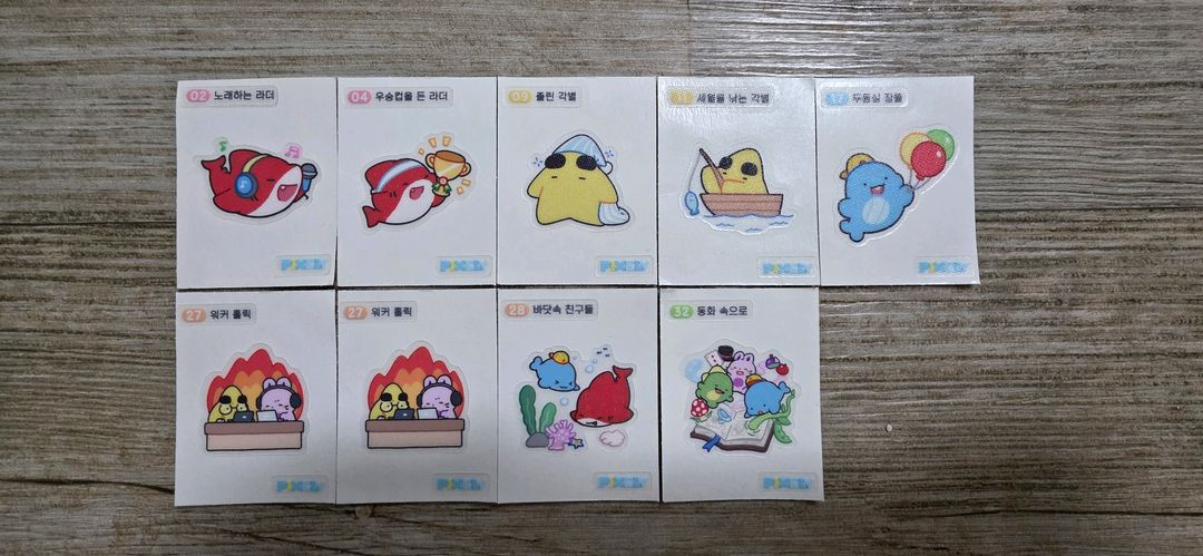 빵이 궁금해서 종류별로 사먹다가 모으게 된 띠부씰 팝니다. 2, 4, 9, 11, 17, 27, 27, 28, 32번입니다. 뭔지 확인하느라 개봉만 했고, 작은 봉투에 담아서 그늘진 곳에 보관했습니다. 하자는 없지만 예민하신 분은 피해주세요. 일괄로만 판매하고, 편택으로 보내드립니다. 지역맞으면 직거래도 가능해요:) 일반 +3900 반값 +1800 or 1900