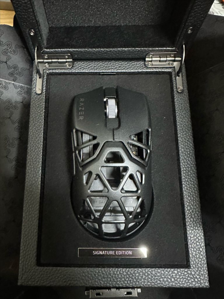 레이저 바이퍼 미니 시그니처 에디션 팝니다 미개봉 새상품 구매해서 하루 사용했고, 마우스 동글 + 본품 외 구성품 일절 사용 안 했습니다. 기본 피트에 도트 피트 붙여서 사용했어요 안전거래 및 교환문의는 죄송합니다