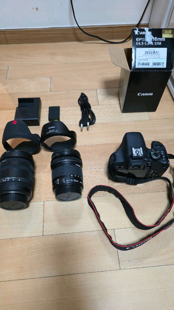 구성품 - 800d 바디 - 시그마 17-70mm 렌즈 + 정품 캡 - 시그마 정품 후드 - 캐논 EFS 10-18mm 렌즈 + 정품 캡 - 캐논 정품 후드 - 배터리 1개 - 배터리 충전기 + 충전선 - 정품 스트랩 - 캐논 EFS 10-18mm 렌즈 박스 캐논 800D , 시그마 팝니다. 많이 안 써서 사용감 별로 없습니다. 다만 시그마 렌즈가 줌 할때 소리가 살짝 나요. 사진 찍는 데는 문제 없습니다.